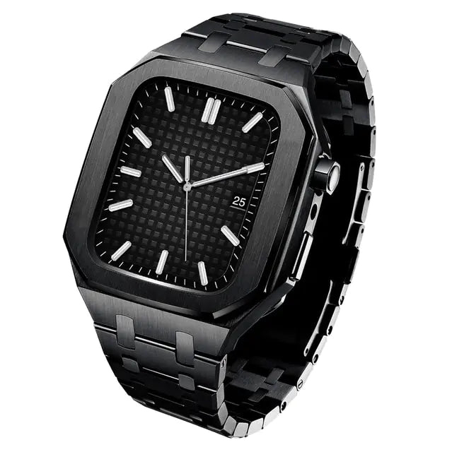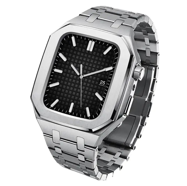 Introducing the Logic MOD Kit for Apple Watch Series - the perfect stylish accessory for your Apple Watch. Our kit is crafted from super strong 316L Stainless Steel with a TPU Rubber band and screws to secure in place. The bezel material is also 316L Stainless Steel, giving you an extra layer of protection. At only 120g (Rubber Set) or 150g (Steel Set), it’s lightweight and comfortable enough to wear all day – but robust enough to handle whatever life throws at it. We’ve included installation tools and screws so you can rest assured that your watch will be safely secured wherever you go. Packaged in a carton box to offer unbeatable protection against damage during transit, our MOD Kit for Apple Watch Series 6 5 4 delivers style, security, and convenience – all rolled into one.