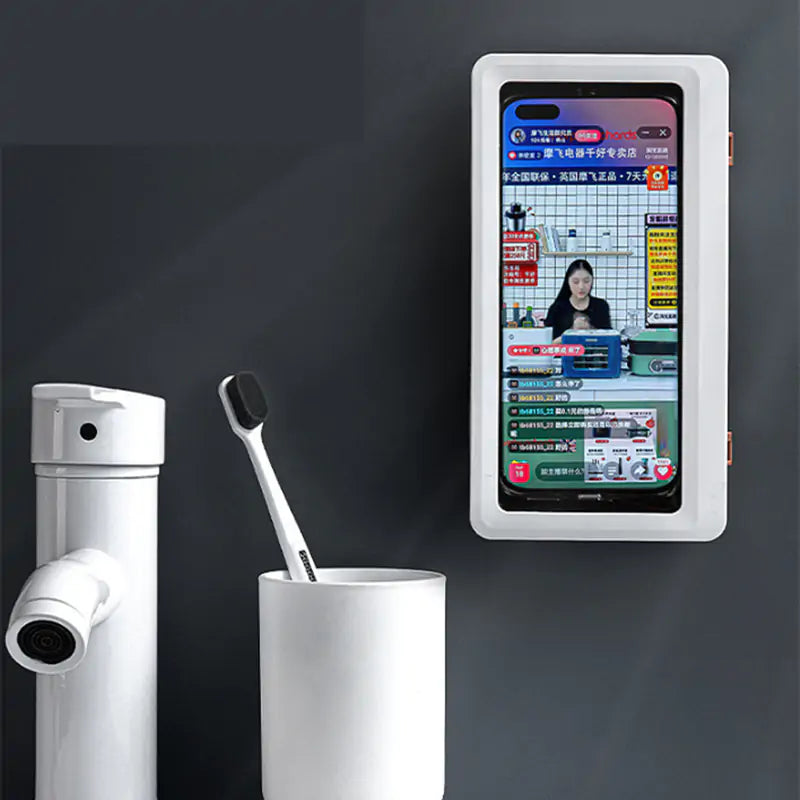 This Phone Box Self-adhesive Holder is a great way to keep your phone safe and dry while you shower. It is made of durable, waterproof material and has a clear touch screen that allows you to use your phone while it is safely sealed inside. The self-adhesive design makes it easy to install and the compact size means it won't take up much space in your bathroom.